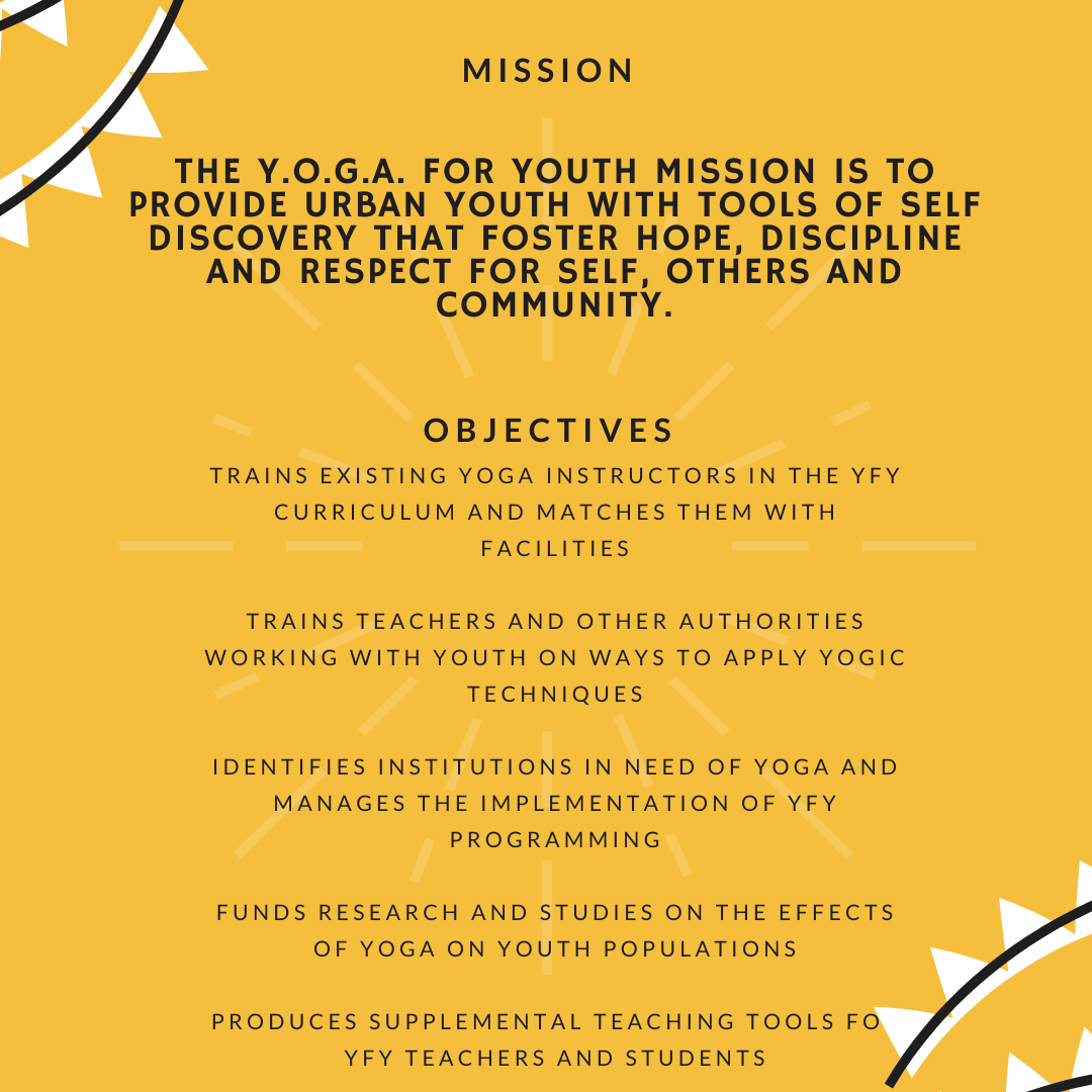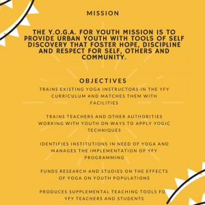 The Y.O.G.A. for Youth mission is to provide urban youth with tools of self discovery that foster hope, discipline and respect for self, others and community.Objectives_-4By Keval Kaur / November 14, 2019